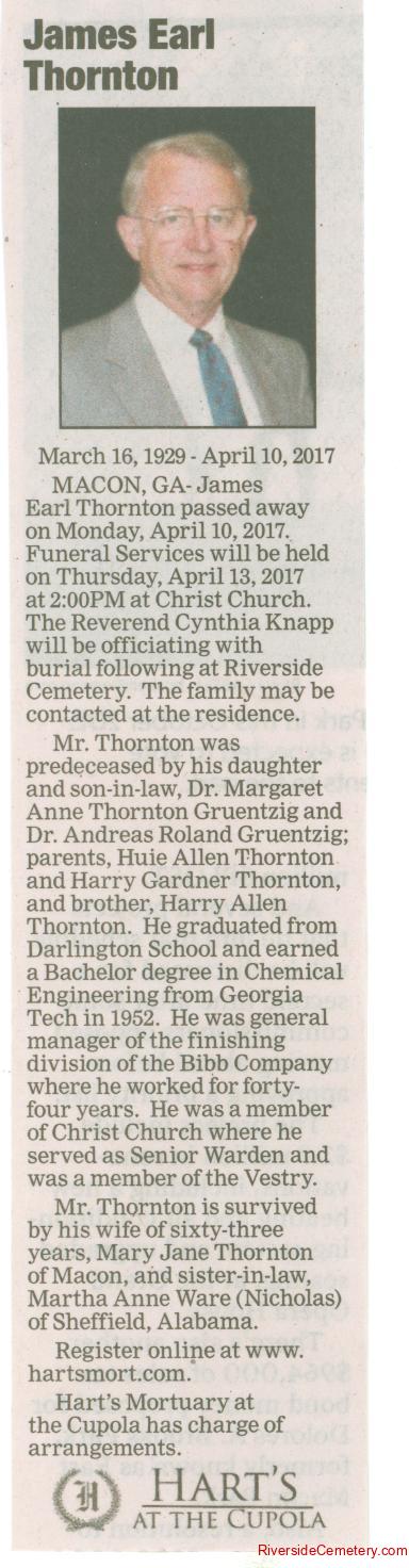 | James Earl Thornton | 03/16/1929 | 04/10/2017 |