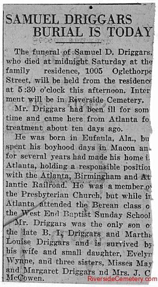 Daughter: Evelyn Wynne Driggars Sisters: May Driggars, Margaret Driggars, Mrs. J. C. McCowen