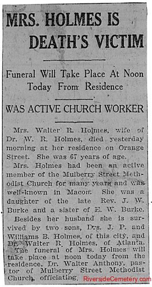 Sons: Dr. J. P. Holmes, Dr. W. B. Holmes, Dr. Walter R. Holmes