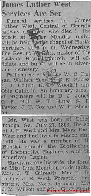 Daughter: Mrs. J. T. Gilreath Father: J. E. West Sisters: Nora Johnson, Mrs. J. M. Wilson, Mrs. G. C. Small